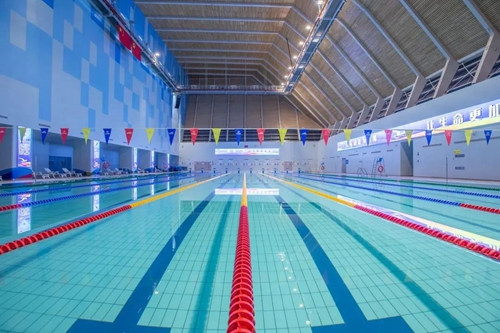鄭州奧體中心游泳館位于鄭州奧體項目東南端(中原區(qū)長椿南路與博體路交匯處),是鄭州市甲級游泳場館,鄭州奧體中心游泳館建筑面積1.9萬平方米,館內設有3100個固定座席,擁有標準10道50米競賽池,10道50米訓練池,10道25米教學池,既有可以承辦國際賽事的專業(yè)級比賽場館,又有滿足全民運動的標準泳池,更配備了完善的更衣休閑區(qū)及全館智慧科技系統(tǒng),市民朋友可以盡享宏偉水上場館的視覺沖擊與暢快運動的極致體驗!