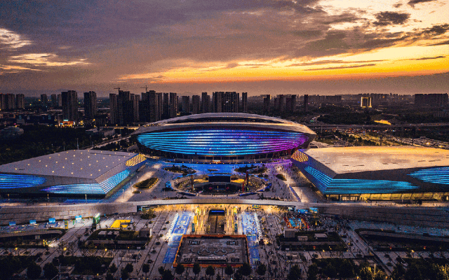 “星空夜市位于奧體中心的樞紐位置——東下沉廣場,北側(cè)緊鄰鄭州唯一一個國際標準的冰上運動中心。