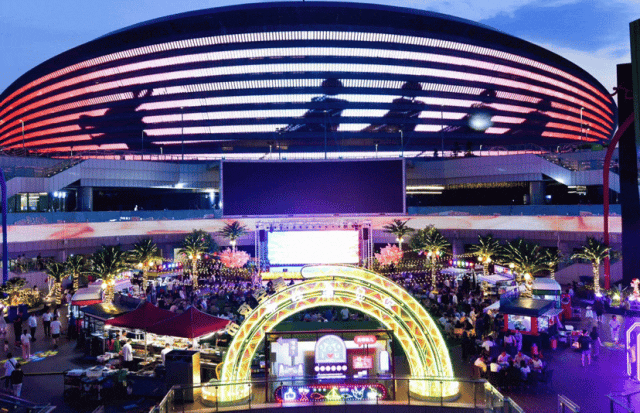 東廣場以及下沉廣場點亮初秋的夜空。在這里更有少兒輪滑、無人機足球、帥酷射擊、武術(shù)搏擊等體育教學展演,以運動精神點亮美好生活。趣生活,總有好“市!”,這里是集體育用品裝備、潮玩服飾、生活好物、網(wǎng)紅零食、文創(chuàng)手工等為一體的創(chuàng)意市集,讓你在初秋的夜幕中愜意閑逛,挑選新潮好物,裝扮靚麗時光。