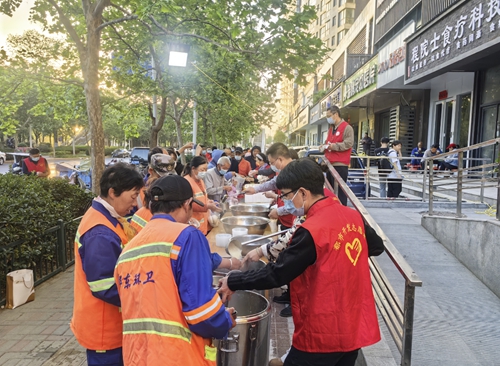 活動(dòng)現(xiàn)場(chǎng),鄭州城發(fā)集團(tuán)的志愿者們分工明確,大家搬桌擺椅、準(zhǔn)備熱粥,有條不紊忙碌著。7時(shí)剛過(guò),附近的環(huán)衛(wèi)工人、孤寡老人陸續(xù)前來(lái),排起長(zhǎng)隊(duì),志愿者們熱情招呼著,依次將熱騰騰的“愛(ài)心早餐”分發(fā)到每一位用餐者手里,還不時(shí)說(shuō)著“辛苦了”“謝謝您”“不夠再添”…… 活動(dòng)現(xiàn)場(chǎng),一句句暖心話語(yǔ)讓志愿者跟領(lǐng)粥者心拉得更近、氛圍也變得更暖。