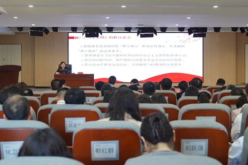 集團黨委邀請河南省委黨校中共黨史教研部王春亮副教授,以《嚴格遵守黨內法規(guī) 做新時代好干部》為題展開宣講。王教授分別從紀律嚴明是黨的光榮傳統(tǒng)和獨特優(yōu)勢、黨員干部嚴格遵守黨內法規(guī)的迫切性和做嚴守黨內法規(guī)好干部的主要著力點三個方面宣講,號召全體黨員干部要以黨紀學習教育為契機,上好黨性鍛煉“必修課”。