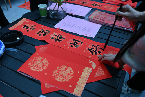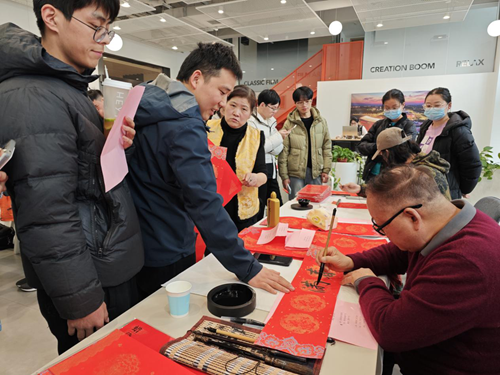 活動(dòng)當(dāng)天,鄭州市文聯(lián)的書(shū)法家們受邀來(lái)到現(xiàn)場(chǎng)。他們個(gè)個(gè)精神飽滿(mǎn),手執(zhí)毛筆,在一張張紅紙上揮灑自如,書(shū)寫(xiě)著寓意深遠(yuǎn)的新年序言。這些序言既是對(duì)過(guò)去一年的總結(jié),也是對(duì)新年的美好期許。書(shū)法家們的精彩表演贏得了現(xiàn)場(chǎng)觀眾的連連稱(chēng)贊,租戶(hù)們紛紛表示:“書(shū)法家們寫(xiě)的字真是太好了!‘福’字看著就喜慶,春聯(lián)的寓意也都非常美好。”